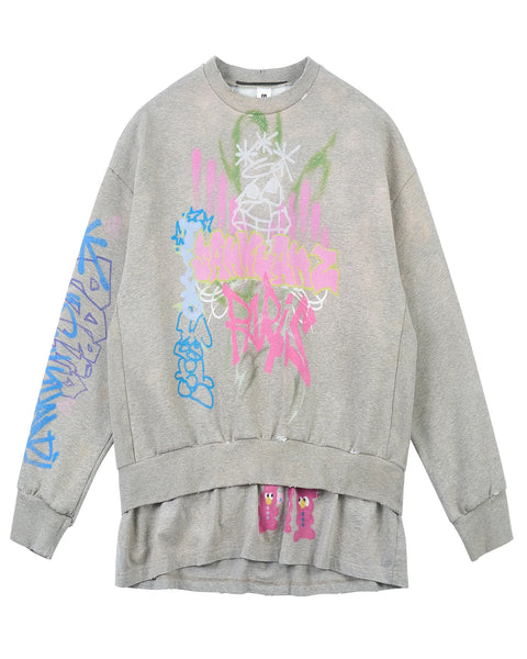 25AW 新品SANKUANZ DOUBLE HEM CREWNECK SANKUANZ(サンクアンズ)「 BUMPY GRAFFITI PRINT DOUBLE HEM CREWNECK