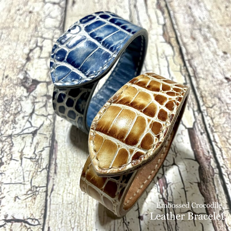 - メンズ > アクセサリー > 公*o様 【希少】KMRII レザーブレスレット ダブルバックル クロコ型押し レザーブレスレット Leather Bracelet ( イタリアンレザー クロコ型