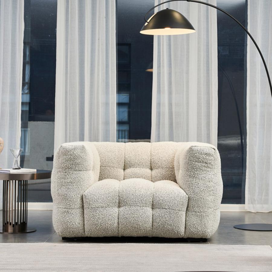 - ソファ・ソファベッド > 2人掛け・3人掛けソファ > ホワイトモダンソファ ロールクッション付き 1人掛け] VeroMan ソファ もこもこ ボア マシュマロ ソフトチェア オフ