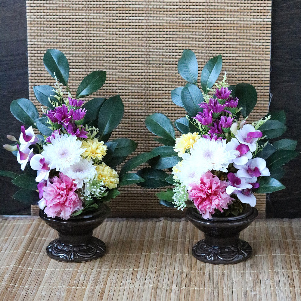 | 商品の特徴 | イルカ様 オーダー 仏花 一対 特大 70cm イルカ様 オーダー 仏花 一対。イルカ様 オーダー 仏花 一対 特大 70cm イルカ様 オーダー 仏花 一対。イルカ様 オーダー 仏花 一対 特大 70cm イルカ様 オーダー 仏花 一対。お待たせ致しましたご注文の お品が出来上がりました!❁¨̮ 仏壇 お供え花 ❁¨̮ O-15枯れないお花アーティフィシャルフラワー (造花)で手作りした ハンドメイドの アレンジメントフラワー 仏花 お供え花 一対です※花瓶は付属しませんお彼岸、お盆、の お墓参りに仏壇のお供えに お使い頂けましたら幸いです。イルカ様 オーダー 仏花 一対 特大 70cm。✅〈使用している お花〉・ライラック パープル・蓮 紫、白・シャリーマム 紫・スカビオサ・ボールマム 黄緑、ホワイト・アルストロメリア 黄色・ピンポンマム 白×黄緑・菊 白・ゆり カサブランカ ホワイト・リシアンサス 白✅〈サイズ〉・高さ 72 cm (お花の部分は50cm)・幅 36〜40cm ✅〈発送方法〉防水梱包をして、発送いたします※気をつけて梱包いたしますが、輸送途中に花葉が落ちたり 多少の型崩れがあることもあることをご了承ください✅花葉の色味が実際のものと多少異なって見えることもありますので ご理解の上よろしくお願いいたします!❣️最後に ご挨拶 (*ˊᗜˋ*) ノお供え花は故人が好きだったお花や お色、故人との思い出の花を お選びいただけると良いかと思います。2026年 お正月 フラワーアレンジメント。大切なのは お気持ちです!一つ一つ 心を込めて お作りしています。結婚式 アーティフィシャルフラワー ケーキ入刀 テーブル 装花 ブライダル。皆様の お気持ちを 届ける 彩りの橋渡しになれたら幸いです♡他にも仏花、フラワーリース、フラワーギフトなど 多数出品中!!♡ #Mee仏花 ♡♡ #Meeフラワーアレンジメント ♡供養花 献花お彼岸 新盆 お悔やみ インテリアフラワーアレンジメントフラワー | ||