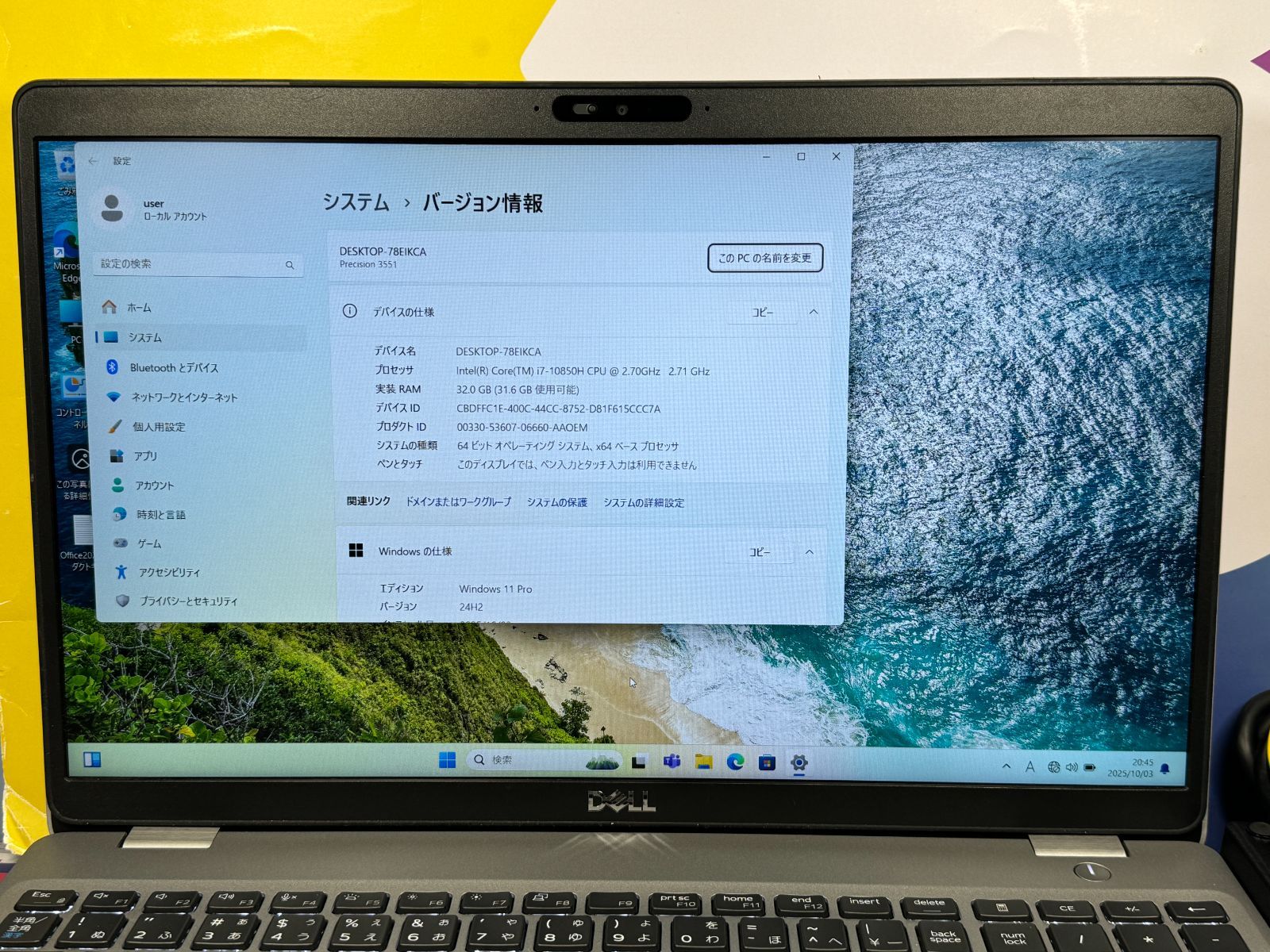 - ノートPC > Windowsノート本体 > デル Precision 3551 極美品 32GB 第10世代i7 ノートPC デル Precision 3551 極美品 32GB 第10世代i7 ノートPC デル Precision