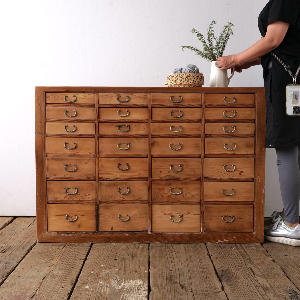 | 商品の特徴 | アンティーク 引き出し 抽斗 薬箪笥 薬箪笥 抽斗九十四杯 | 古物屋 壱両。アンティーク 引き出し 抽斗 薬箪笥 薬箪笥 抽斗九十四杯 | 古物屋 壱両。古家具 古い木味 総桐 卓上 薬箪笥 薬箱 小箪笥 小引き出し 抽斗 9杯。年季の入ったアンティーク薬箪笥です。引き取り限定☆昭和レトロ ガラスケース。アクセサリーや小物入れにも良いですが、とりあえず置いておくだけでも雰囲気ありますよ。古家具 古い木味 総桐 卓上 薬箪笥 薬箱 小箪笥 小引き出し 抽斗 9杯。取っ手部分には上からラベルを差し込めるようほんの少し隙間が空いています。サイズ高さ35cm、横幅34cm、奥行き15cm気に入っていたのですが、部屋の中に物が溢れてきたので仕方なく断捨離中です。新品未開封 IKEA カラックス kallax オーク調。400円値引き★木製トミカ収納ケース 80台 アクリル障子付 コレクションケース。#アンティーク#古道具#ブロカント#引き出し#抽斗#薬箪笥#昭和レトロ#レトロ | ||
