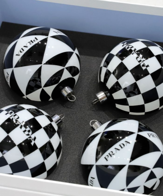 PRADA 白黒チェッカーオーナメント 4個セット PRADA Bianco/Nero Logo Christmas Tree Glass Ball Ornaments Set of