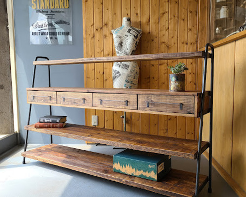 | メーカー | 希少品 オーダーラック 古材 スクラップウッド アイアン ガラス シェルフ 棚 希少品 |