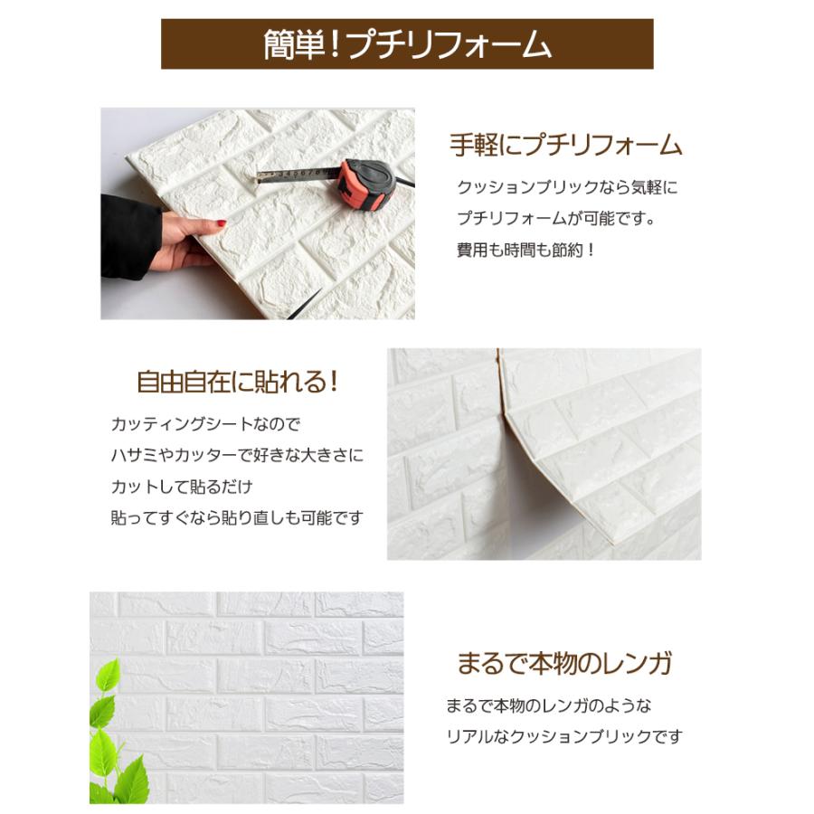 KB-01 50枚set DIY クッションブリック ホワイトレンガ調リフォーム 50枚set DIY 3D 壁紙 クッションブリック ホワイトレンガ調壁紙シール
