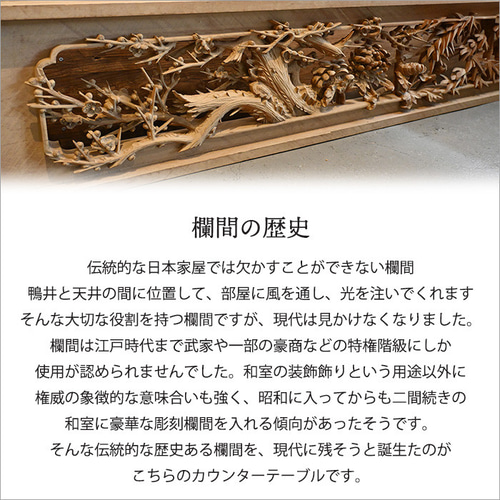 | 商品の特徴 | 手彫り欄間と古材を使用した和風バーカウンター ダイニングテーブル。手彫り欄間と古材を使用した和風バーカウンター ダイニングテーブル。昭和レトロの通販ならBANUL – タグ 。特徴...完成品利用人数...4人向け天板の素材...天然木サイズ…45cm高さ、120cm横、55cm奥行41年前に購入した無垢材のリビングテーブルになります。レトロ感、高級感のあるアンティーク品です。脚の付け根に商品シールの剥がし跡あり、また使用による小傷、経年劣化による擦れ剥げ等ありますが、テーブル自体はグラつき等もなくしっかりどっしりとした作りとなっております。中古品にご理解頂ける方のご購入をお待ちしております。# アンティーク# 昭和レトロ# 応接間テーブル# 天然木テーブル。幅135×奥行80] ダイニングテーブル 単品 4人掛け 長方形 天然木 木製。カリモク Karimoku⭐️センターテーブル リビングテーブル ナチュラル。ヴィンテージ ラタン ガラス ラウンド テーブル 籐 モダン 昭和レトロ。三越家具 Brugge/ブルージュ カントリーハウス センターテーブルCLT11 | ||